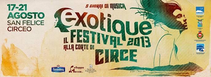 Exotique 2013 – il Festival alla Corte di Circe giunge quest’anno alla quarta edizione e celebra quella bizzarra alchimia che attrae, riunisce, appassiona un pubblico sempre più numeroso di musiclovers sotto lo sguardo attento e vigile della Maga Circe. Lo stesso sguardo che richiama orde di musicisti e dj, che approdano al Circeo da ogni parte del mondo attratti da questo magnetismo ancestrale, irresistibile, misterioso. La manifestazione si conferma in crescita: quest’anno è stata infatti aggiunta una quinta giornata rispetto alle quattro della precedente edizione, e numerosissime sono le anteprime con djset e live set che, ospitate dalle attività commerciali che sostengono il festival, hanno preso il via già il 27 luglio e andranno avanti fino al 13 agosto per accompagnare gli amanti della buona musica con cadenza quotidiana nell’ora dell’aperitivo serale.