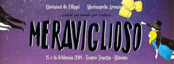 Da un’idea di Giovanni De Filippi e dalla penna di Mariangela Aruanno nasce “…esiste un modo per volare… MERAVIGLIOSO“, spettacolo più che musicale che si terrà presso il Teatro Traetta di Bitonto nei giorni 15 e 16 Febbraio 2014. La regia è di Silvia Cuccovillo mentre la direzione musicale e gli arrangiamenti sono di Katya Fiorentino. Al contrabbasso, Flavia Ostini; alla batteria, Cecilia Sanchietti; al pianoforte, Katya Fiorentino. Le voci narranti sono quelle di Giovanni De Filippi e Mariangela Aruanno.