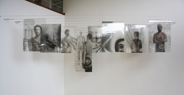 La seconda parte dell’esposizione, dedicata alla memoria della deportazione, è introdotta dall’opera Doppelgänger di Giancarlo Marcali: sono grandi figure umane, trasparenti fino a sembrare radiografate, che appaiono come un duplicato spettrale di una persona reale. Realtà e memoria si confondono.