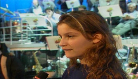 Ma anche il momento in cui cantò anche lei sul palco dell’Ariston in italiano.