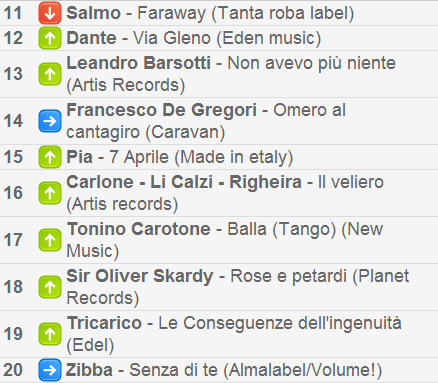 | 20 | Zibba – Senza di te (Almalabel/Volume!) | ||