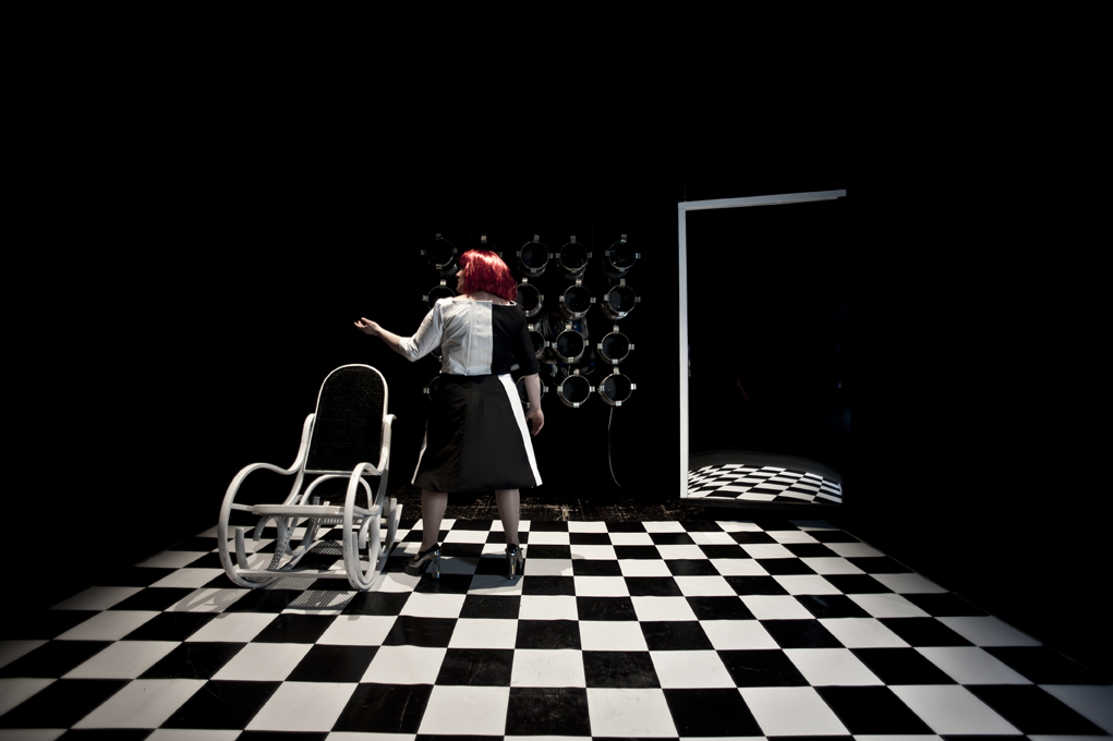 Solo due colori in scena, il bianco e il nero, uno specchio deformante, una sedia a dondolo, una parrucca rossa, un abito-armatura. Pochi oggetti per raccontare una vita di coppia segnata dalla violenza psicologica e fisica. Una scena che diventa simbolo di luoghi comuni (come la casa, il posto di lavoro, il supermercato) e che raccontano una storia di violenza e amore realmente accaduta, elaborata dalla penna di Carlotta Vitale dopo tre anni di ricerche e studi sul fenomeno della violenza domestica. In scena Carlotta Vitale diretta dalla regia di Mimmo Conte della Compagnia potentina Gommalacca Teatro. Un lavoro di ricerca, come sottolinea il regista, dove si inizia a delineare un vero e proprio stile della compagnia, caratterizzato dalla presenza in scena dell’attore che non interpreta semplicemente un personaggio ma prende sul palco una netta posizione sui temi sociali e politici. Figlio del Progetto “Scegli il rispetto, non la violenza”, lo spettacolo ha vinto la prima edizione del Premio Cecilia Salvia nella sezione del “Festival femminile” in cui nasce, dedicato allo sradicamento delle forme di violenza fondate sul genere.