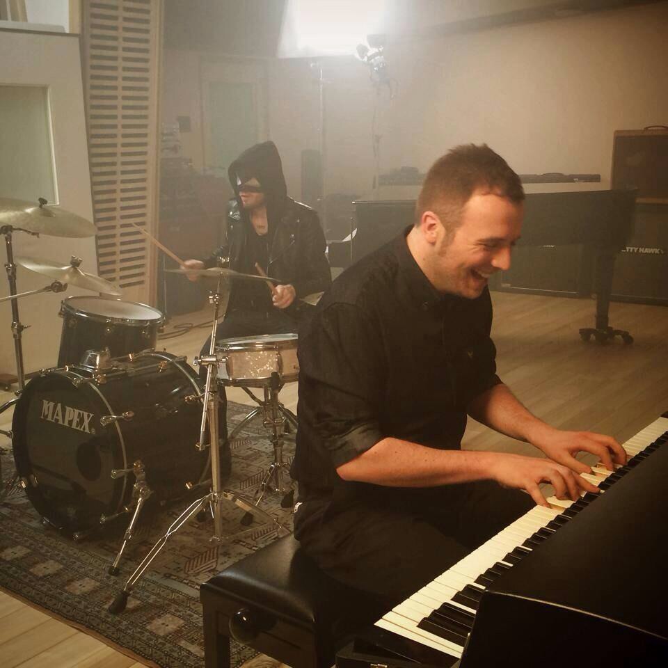 Raphael Gualazzi al pianoforte e The Bloody Beetroots alla batteria: così i due artisti, sorridenti, appaiono… http://t.co/fW6z3UH2PY