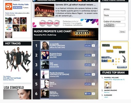 Radio Airplay e MEI/Audiocoop durante la 64° edizione del Festival della Canzone Italiana offriranno sul portale radioairplay.fm una speciale classifica social elaborata in base ai likes assegnati ad ogni brano dagli utenti di Facebook.La graduatoria sarà aggiornata in real-time e riguarderà soltanto gli otto artisti in gara nella categoria Nuove Proposte – gli utenti Facebook dal portale radioairplay.fm potranno votare attribuendo al massimo un like per ciascun brano, che potrà essere annullato entro Lunedi 24 Febbraio, giorno in cui Radio Airplay proclamerà il vincitore.