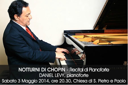 Sabato 3 maggio una serata interamente dedicata alle ispirazioni di Chopin con i suoi Notturni, nelle mani di Daniel Levy, danno al pianoforte una Voce simile al bel canto che il compositore polacco ammirava in Bellini e Donizetti. Una serata all’insegna del romanticismo che cambia a chi ascolta.