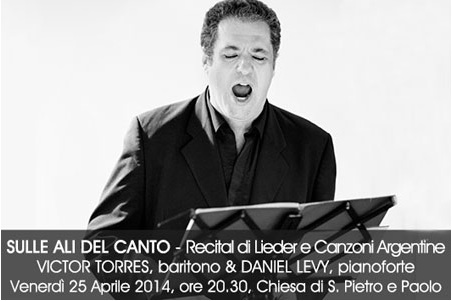 Nel concerto Sulle ali del canto di venerdì 25 aprile, il senso di freschezza del repertorio scelto per la Primavera, si mette in consonanza con il canto naturale del baritono Victor Torres, riconosciuto come una delle figure più complete del canto a livello europeo, accompagnato al pianoforte dal maestro Daniel Levy. Lieder di Schubert, Schumann e Brahms, assieme a canzoni del repertorio classico argentino, di Guastavino e López Buchardo, sono le promesse di una serata intensa, intima e folgorante.