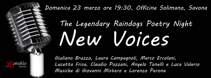 Savona. Domenica 23 marzo alle Officine Solimano di Piazza Rebagliati torna la Raindogs Poetry Night, l’ormai storica serata dedicata alla poesia e alla letteratura che, negli anni, ha visto la partecipazione di molti nomi importanti del panorama letterario nazionale.