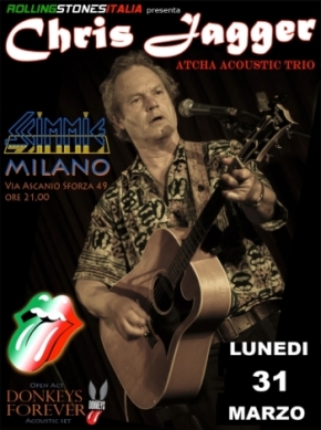 Lunedì 31 marzo il locale SCIMMIE di Milano (via Ascanio Sforza, 49) ospita in concerto CHRIS JAGGER, fratello di Mick Jagger. Alle Scimmie, Chris Jagger (chitarra acustica, armonica e voce solista) si esibirà in trio con Eliet Mackrell (violino) e David Hatfield (contrabbasso). L’apertura è affidata ai Donkeys Forever, tribute band dei Rolling Stones.