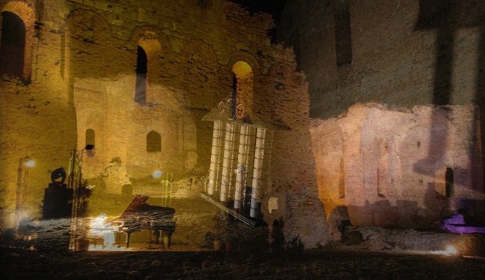 E’ una produzione imponente che mette insieme gli elementi storici di questa terra, dunque la presenza dei Normanni, gli elementi della loro testimonianza, quindi L’Abazia così suggestiva del parco Scolacium e naturalmente gli elementi di legenda. L’intento è dare vita ad una lettura visionaria di quello che può essere stato il periodo normanno provando ad immaginare l’ultima notte di questo posto. L’ultima notte della dominazione normanna come: ultimo momento in cui, questo luogo è stato popolato ma anche, simbolicamente, come ultimo momento di centralità , di internazionalità politica di questa terra che ha visto, sì, anche altri momenti straordinari – pensiamo al periodo magno-greco – però con i Normanni ha vissuto atti di ribalta molto forte. L’ultima notte di Scolacium è anche simbolo di una progettualità spesso incompiuta di questa terra che, pur tuttavia, è luogo nel quale la gente mantiene la capacità di pensare al futuro e di scrivere una storia diversa , ricca di speranza, di positività. Ciò a prescindere dall’incompiutezza che, ciclicamente, ha contrassegnato e contrassegna questa Regione. Abbiamo commissionato un’opera molto particolare perchè pensiamo di restituire all’occhio del visitatore la Basilica come era attraverso le ricostruzioni virtuali per merito della Capware di Gaetano Capasso (che ha già ricostruito Pompei, Ercolano, i Fori Imperiali ) il light design di Vincent Longuemare, il visual design di Davide Broccoli ma, soprattutto, grazie alla Regia di Cristina Mazzavillani Muti che contribuirà a suggerire una lettura poetica dell’evento forte delle musiche originali di Nicola Piovani commissionate da Armonied’arte festival e della partecipazione straordinaria di Gerard Depardieu nei panni del Gran Conte normanno Ruggero d’Altavilla e del soprano Rosa Feola nel ruolo della Fata Morgana. Tutto ciò per dare vita ad un’opera inedita che siamo certi possa accattivare e incuriosire il pubblico.