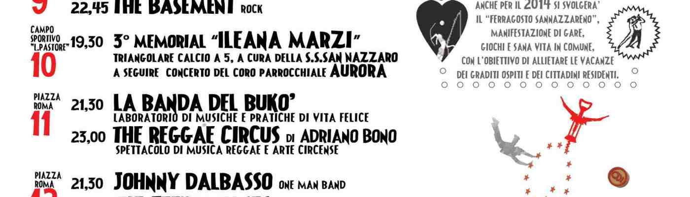 Dal 9 al 18 agosto 2014 torna l’attesissimo appuntamento del Ferragosto Sannazzareno, la storica rassegna di San Nazzaro (BN) giunta alla XXXIV Edizione, un fitto calendario di eventi per la più attiva manifestazione dell’estate sannita, unica nel suo genere per la continuità e l’afflusso di persone. Anche quest’anno il cartellone del Ferragosto investe sullo stare insieme con serenità e gioia, grazie all’entusiasmo e all’impegno degli organizzatori, sempre pronti a coniugare musica, giochi, danza, attività culturali e divertimento per ogni età. Come ogni estate, con il Ferragosto San Nazzaro diventa l’isola del divertimento e della spensieratezza per i residenti e i numerosi turisti.