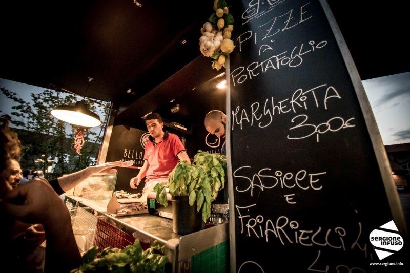 arrosticini, fritto di pesce e olive ascolane (Ape Scottadito); miasse: piadine di mais farcite con salumi e formaggi (Farinel on the Road); gelato naturale (Cool); waffels, choco kebab, crepès (Lembo Bistrot); Vincotto, patate novelle cotte nel vin santo (La Credenza di Vincotto Experience e Novella di Galatina la patatina Salentina), gelati italiani (Eskimo); mozzarella di bufala & co (mòmò Food); cucina medievale (Matilda Cucina errante); hamburger di chianina (Ilstreetfood Torello de La Toraia); pizza napoletana con forno a legna (Johnnypizzaportafoglio); focaccia calda e mortadella (Pizza & Mortazza); burger di fassona, tartare di chianina e black angus (Fuori di mente); cucina romagnola, piadine e strozzapreti (Food Truck Cinemadivino); pizza alta (Pizzeria I Due Gatti); panzerotti dolci e salati (Quattro Zii); American Barbecue e BBQ di carne a bassa temperatura (Phil’s Slow Smoked American Barbecue – Street food & Catering); pane con pasta e fagioli (Primo Sapore); gelato e ghiaccioli (Gelateria Le Carapine); panini gourmet (Ape Gourmet Virgili); gelato giapponese racchiuso in 2 cialde di riso (Monaka); cucina vegana, piadine con farina di canapa (Cucinando su ruote); hot dog di qualità (Popdog); arancine dalla Sicilia (LuBar – Slow Street Food); pizza a portafoglio e melanzane alla parmigiana (Bello & Buono); burger di qualità cotti sottovuoto (Ape Tizer); vino (Caravin); pasticceria(Mignon).