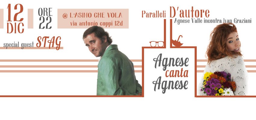 Venerdì 12 dicembre ore 22 tornerà a L’Asino che Vola (in via Antonio Coppi 12/d – Roma) per presentare lo show “Agnese canta Agnese”.
