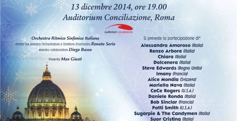 Sul palco del tradizionale appuntamento natalizio si alterneranno grandi nomi della musica italiana e internazionale (in ordine alfabetico) accompagnati dall’Orchestra Ritmico Sinfonica Italiana diretta dal Maestro Orchestratore e Direttore d’Orchestra Renato Serio e dal Maestro collaboratore Diego Basso: ALESSANDRA AMOROSO, RENZO ARBORE, CHIARA, DOLCENERA, STEVE EDWARDS, IMANY, ALICE MONDÌA, MARIELLA NAVA, CE CE ROGERS, DANIELE RONDA, BOB SINCLAR, PATTI SMITH con la figlia Jesse, SUGARPIE & THE CANDYMEN, SUOR CRISTINA e per i più piccini, dal mondo dei cartoni animati LE WINX.
