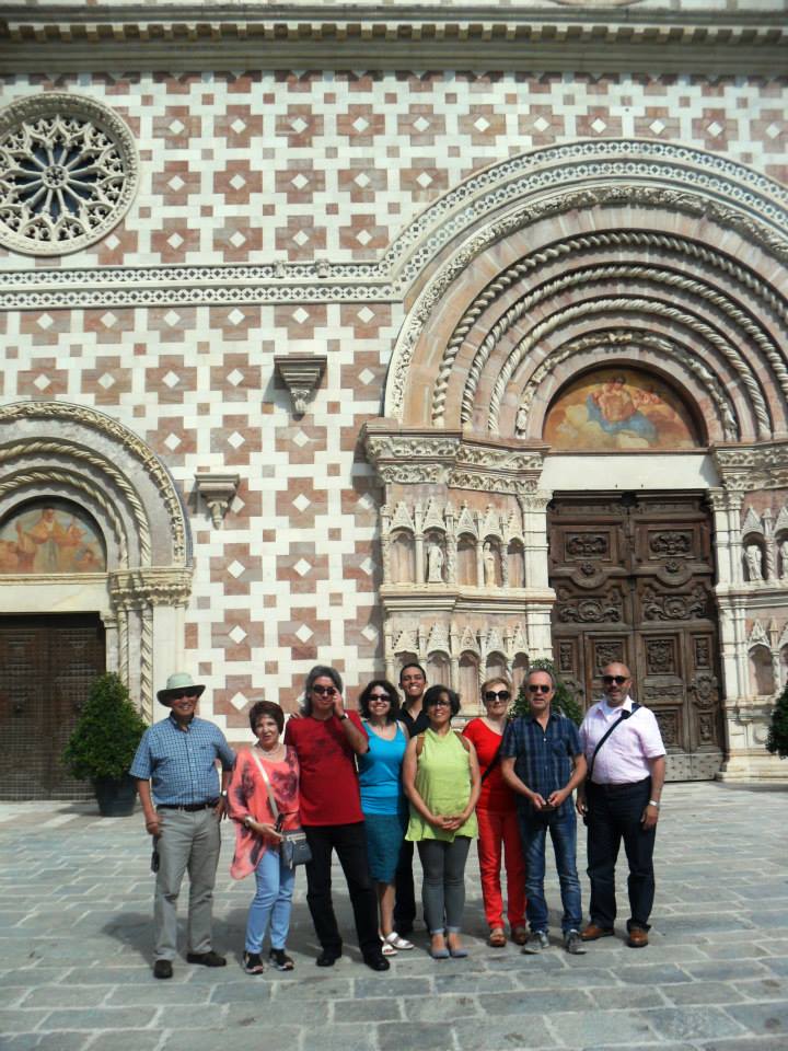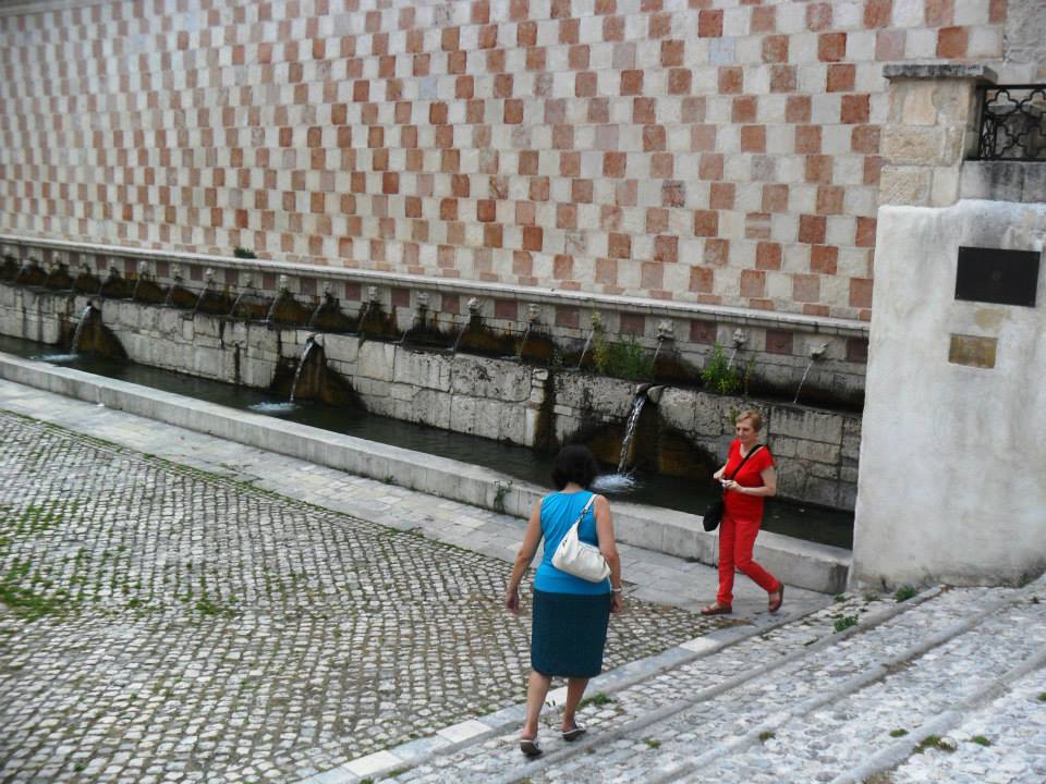 Il pomeriggio dell’ultima giornata è stato dedicato a L’Aquila, per una visita alla città che chi scrive ha guidato. D’altronde è consolidata tradizione che il prof. Ricci porti nel capoluogo d’Abruzzo gli studenti delle sue annuali Summer School, per visitare i monumenti e le meraviglie di una delle città d’arte più belle d’Italia. Una consuetudine che neanche il terremoto ha interrotto. E particolarmente egli teneva a far conoscere L’Aquila ai relatori del Forum, sebbene la città soffra ancora pesantemente delle ferite del terremoto del 2009, per il quale il prof. Ricci, con la comunità abruzzese della capitale del Canada allora presieduta da Nello Scipioni e di cui egli è stato esponente, a suo tempo molto s’impegnò per raccogliere aiuti, poi destinati all’Istituto Cinematografico dell’Aquila e all’Associazione onlus di Camarda. Il gruppo dei convegnisti è giunto nel primo pomeriggio all’Aquila ed ha visitato la Basilica di Collemaggio, ascoltando con grande interesse la storia di Pietro del Morrone poi Celestino V, i puntuali riferimenti sulla singolare fondazione della città e sulla Perdonanza, il primo giubileo della Cristianità. Quindi un giro nel cuore della città ha fatto comprendere – non senza manifestazioni di grande stupore per la bellezza delle architetture, anche se ferite – quale fosse il pregio artistico dell’Aquila, che ne ha potuto dare un saggio in alcuni palazzi restaurati e particolarmente con la visita alla Basilica di San Bernardino, recentemente restituita agli aquilani dopo una preziosa opera di consolidamento e restauro. Infine una puntata alle 99 Cannelle, monumento simbolo della città laddove essa attinse il nome ed esercitò una delle industrie più floride dell’economia dei primi tre secoli, con l’arte della lana ed il “panno aquilano” commerciati in tutta Europa. Ancora una meraviglia per gli occhi degli ospiti, fortemente impressionati dalla singolarità della storia dell’Aquila, delle sue valenze architettoniche ed artistiche, dello stupendo contesto ambientale che le fa corona, della spiritualità che ha connotato la sua storia con presenza di figure di grande rilievo. Una chiusura del Forum, dunque, con stupore, un buon viatico per le prossime edizioni. Franco Ricci lo ha sottolineato con soddisfazione, anticipando che presto saranno in Abruzzo per un mese un gruppo di suoi studenti. Tanto per dire, quale sia l’attenzione degli Abruzzesi nel mondo per la propria terra e quali opportunità possono nascere coltivando con loro relazioni non occasionali. In questo campo la Regione, con adeguate politiche sull’emigrazione, molto può fare investendo sulle comunità abruzzesi nel mondo, vera miniera di talenti, amore per l’Abruzzo, ricchezza di umanità.