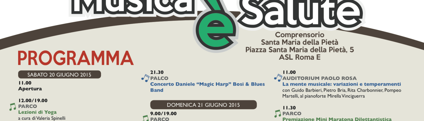 Non è solo una festa di intrattenimento quella organizzata dalla ASL Roma E, con il patrocinio dell’Assessorato Cultura e Turismo di Roma Capitale. L’Azienda Sanitaria infatti scende di nuovo in campo per valorizzare il Parco di Santa Maria della Pietà come luogo della salute e del benessere e questa volta lo fa con musica.