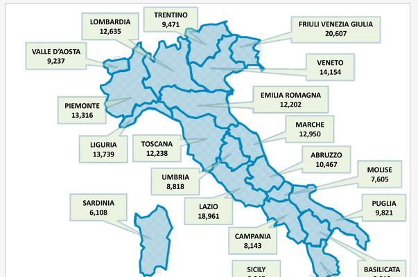Mappa delle OSPEDALIZZAZIONI in Italia per il MELANOMA dal 2001 al 2008