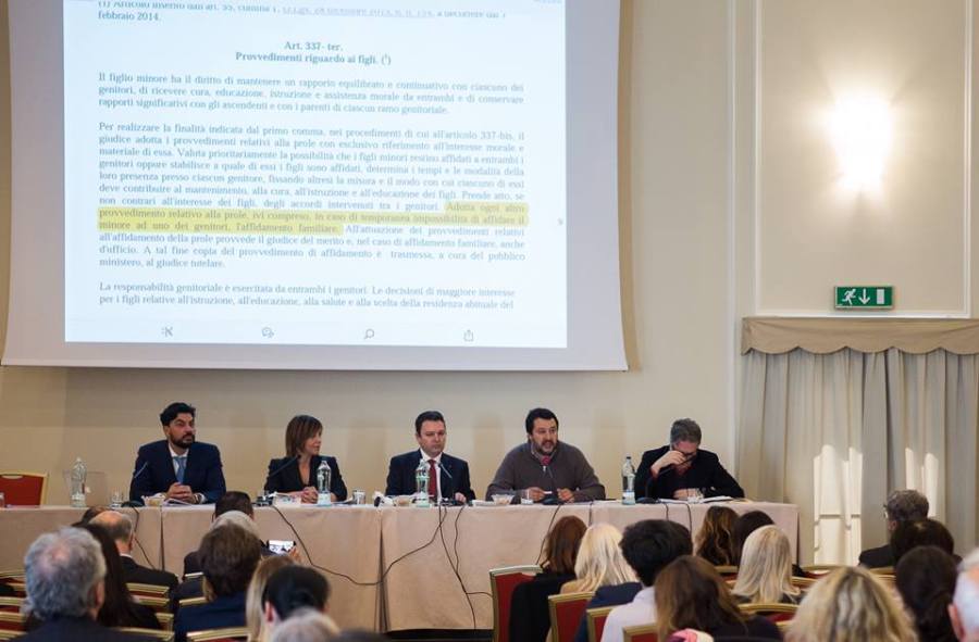 Tra i relatori presenti, oltre all’avvocato Giorgio Aldo Maccaroni, organizzatore e moderatore del convegno, c’erano: l’onorevole Matteo Salvini, segretario federale Lega Nord, il dottor Luigi Colombo giudice onorario del tribunale per i minorenni di Milano, Sabrina Ghezzi avvocato del foro di Bergamo e l’avvocato Armando Cecatiello del foro di Milano che hanno evidenziato le loro esperienze professionali e i vari casi italiani anche con un confronto internazionale.